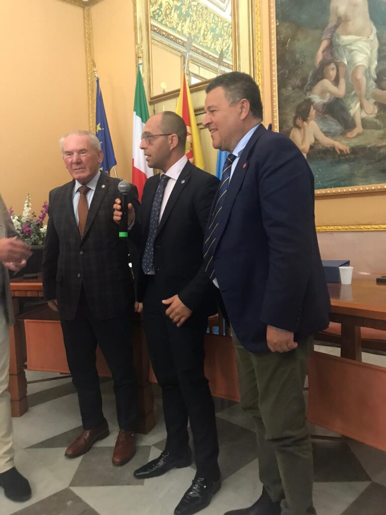 il segretario generale dell’MTF Andrew Agius Muscat con Il presidente dell’MTF Tony Zahra e il sindaco di Scicli Mario Marino