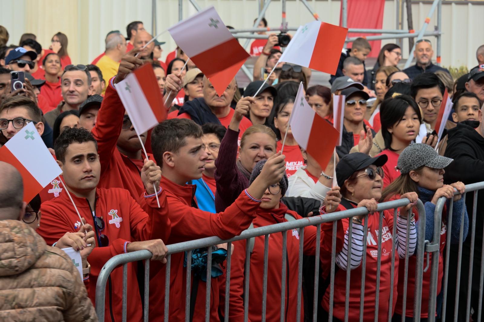 L’arrivo dei partecipanti davanti al Parlamento è stato accompagnato dalla musica della banda dell’Associazione Nazionale dei Circoli Bandistici e dagli atleti di Special Olympics Malta, che hanno guidato l’ultimo tratto fino a St. George’s Square, cuore della cerimonia conclusiva.