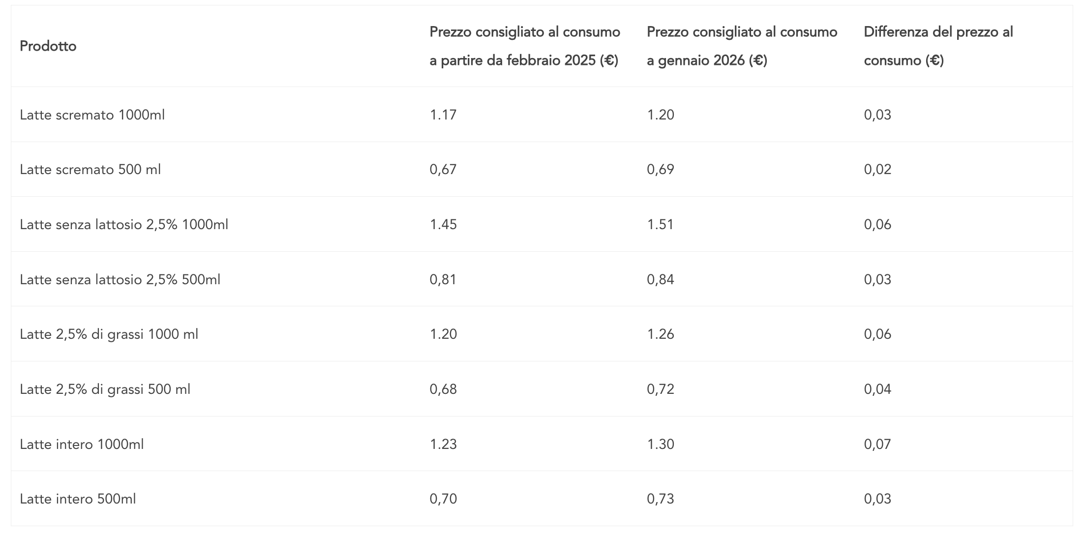 Non si tratta di un fenomeno isolato. Negli ultimi anni i prezzi del latte a marchio Benna hanno seguito una traiettoria crescente, complici l’aumento dei costi operativi, la difficoltà di approvvigionamento e l’ammodernamento degli impianti produttivi. Basti pensare, per esempio, che nel 2019 un litro di latte intero costava 86 centesimi, salito gradualmente fino ad arrivare a 1,15 euro nel 2023 e, ora, a 1,30 euro.