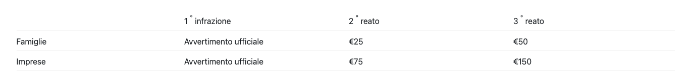 Gli agenti si occuperanno infatti non solo di circolare per le strade, ma anche di controllare e mettere letteralmente mano all’interno degli stessi sacchi della raccolta differenziata, applicando avvisi e persino comminando multe qualora dovessero trovare rifiuti smaltiti in maniera errata, come indicato nella tabella diffusa dall’ERA e riportata qui di seguito: