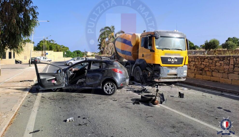 Continua la drammatica serie di incidenti stradali sull’arcipelago maltese. L’ultima vittima è un 54enne di Qormi, in lotta per la vita dopo le gravi ferite riportate nello scontro tra l’auto a bordo della quale stava viaggiando (una Mazda2) ed un camion betoniera guidato da un 31enne di Dingli.