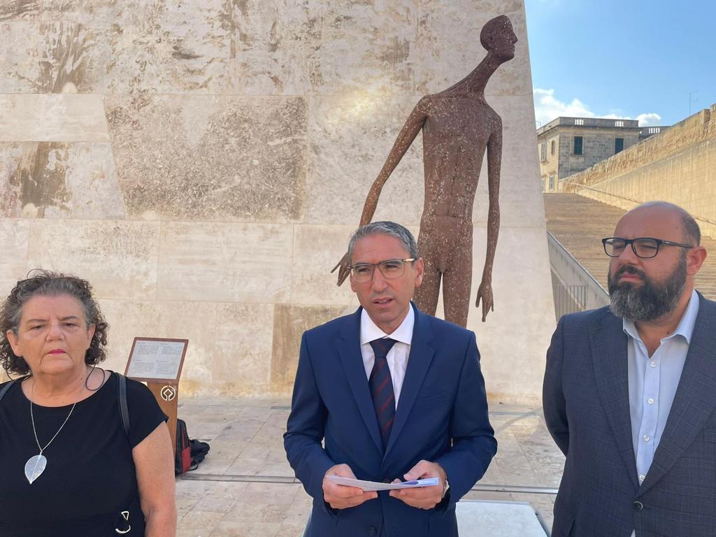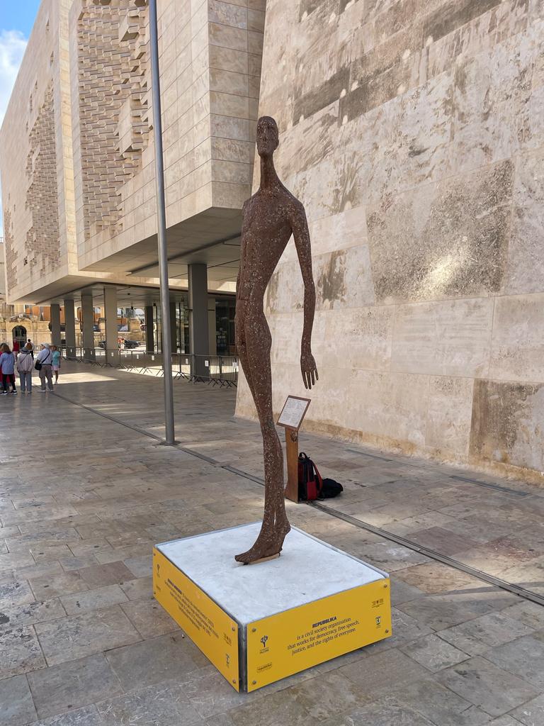 In occasione del sesto anniversario dell’omicidio di Daphne Caruana Galizia, questa mattina il presidente della Ong Repubblika, Robert Aquilina, insieme ad Ann Demarco, attivista di OccupyJustice, ha dato il via alla serie di attività organizzate con Manuel Delia per onorare la memoria della giornalista uccisa da un’autobomba nell’ottobre del 2017. Accanto a loro l’opera d’arte “Il Risorto da combattimento” dell’artista italiano Gerald Moroder, realizzata con i resti della strage di Capaci in cui persero la vita il giudice Giovanni Falcone, la moglie Francesca Morvillo e tre agenti della scorta.