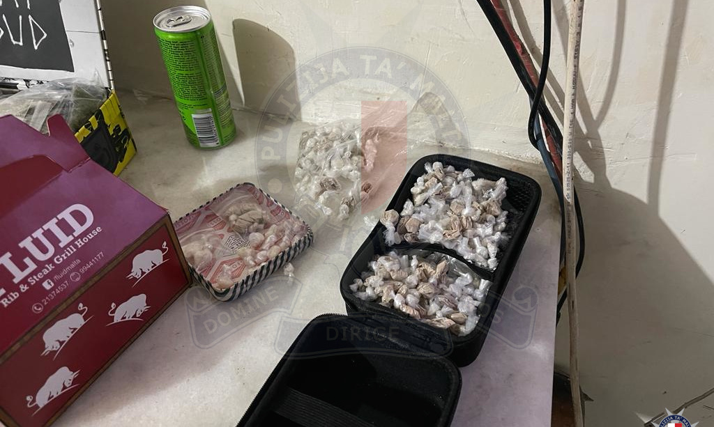 Una perquisizione all’interno di un capannone situato in Triq il-Gerrejja a Marsa ha portato all’arresto di un individuo collegato al traffico di droga poichè trovato in possesso di 385 bustine di cocaina, 250 di eroina e 45 di cannabis sintetica, tutte confezionate e pronte per lo spaccio.