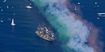 Come parte della cerimonia, la pattuglia delle Frecce Tricolori, fiore all’occhiello dell’aeronautica militare italiana, ha eseguito uno spettacolare volo acrobatico sorvolando il Golfo di Genova, a sugellare la partenza della nave.
