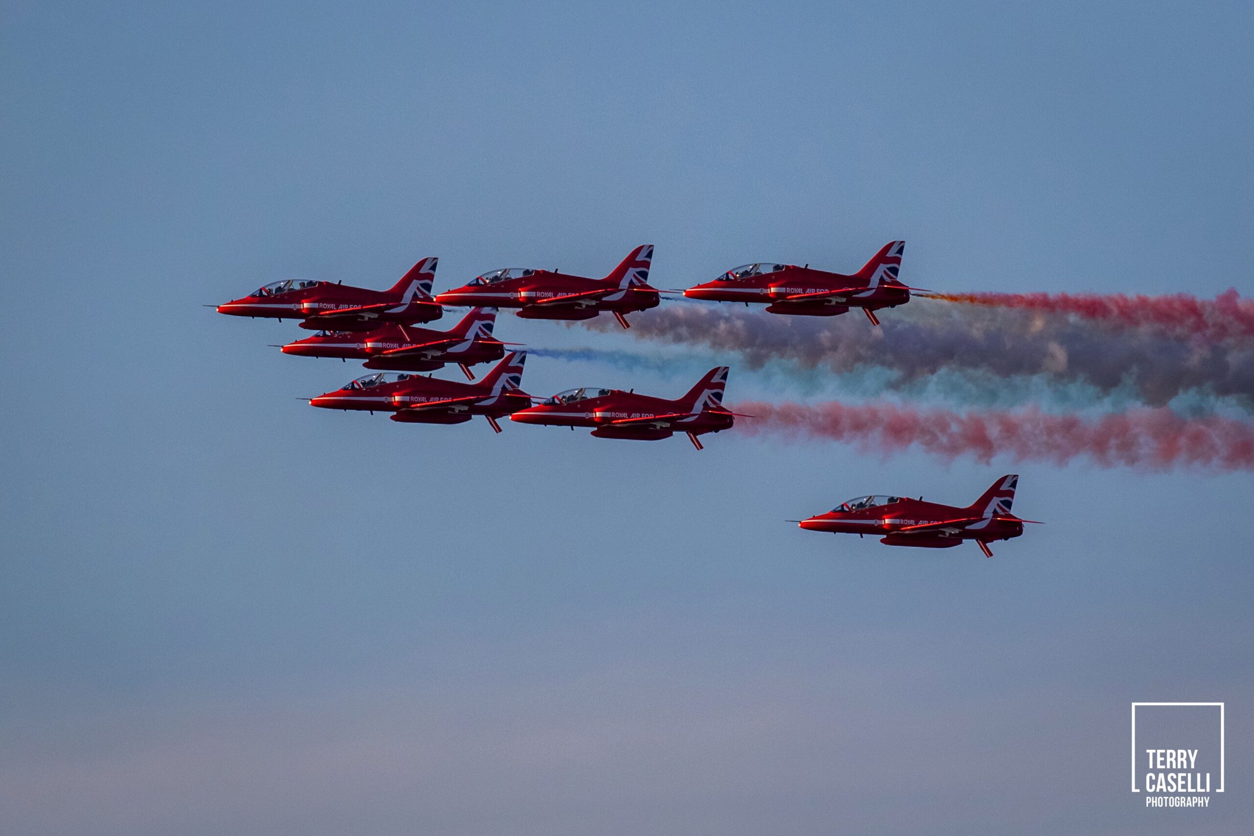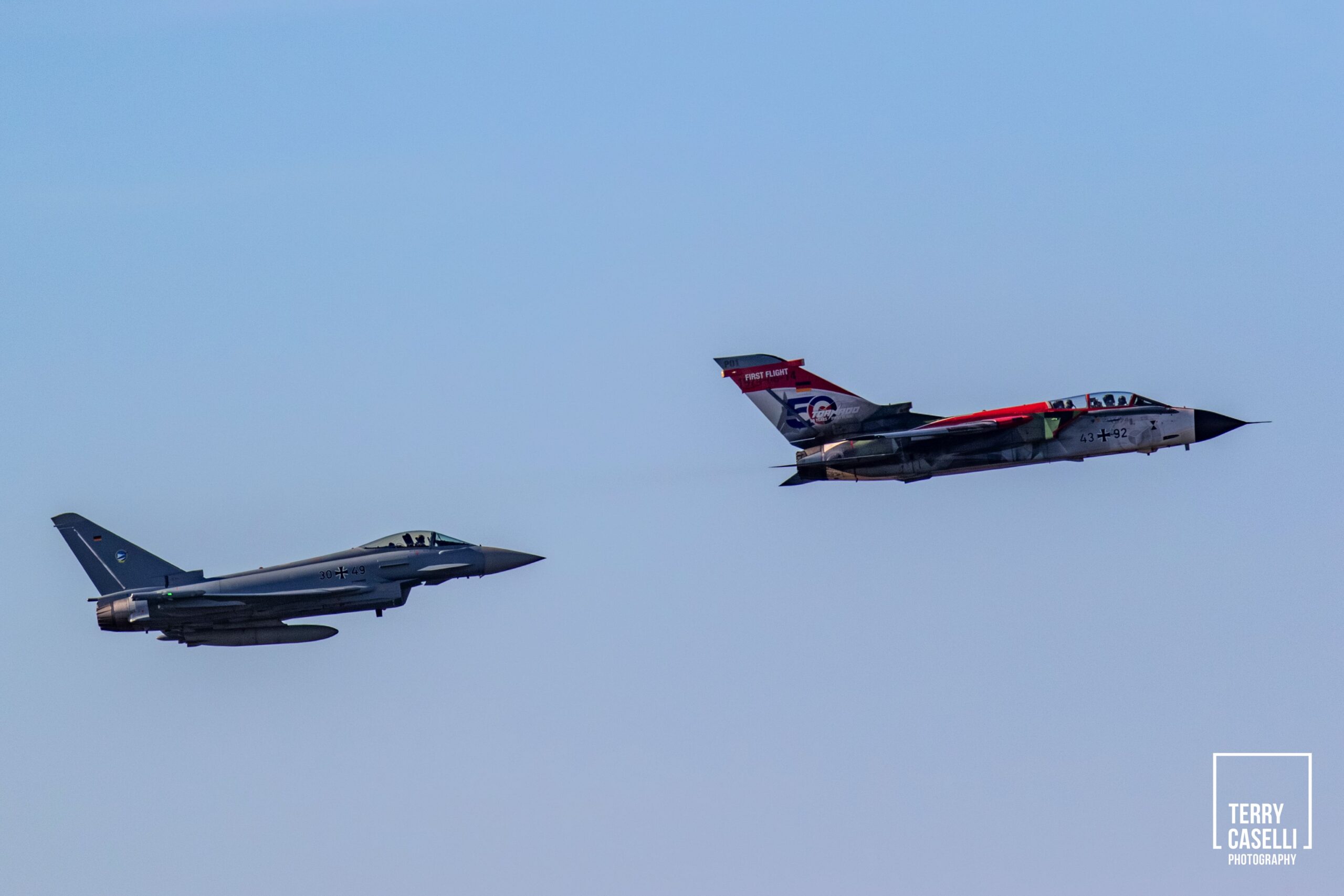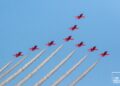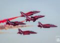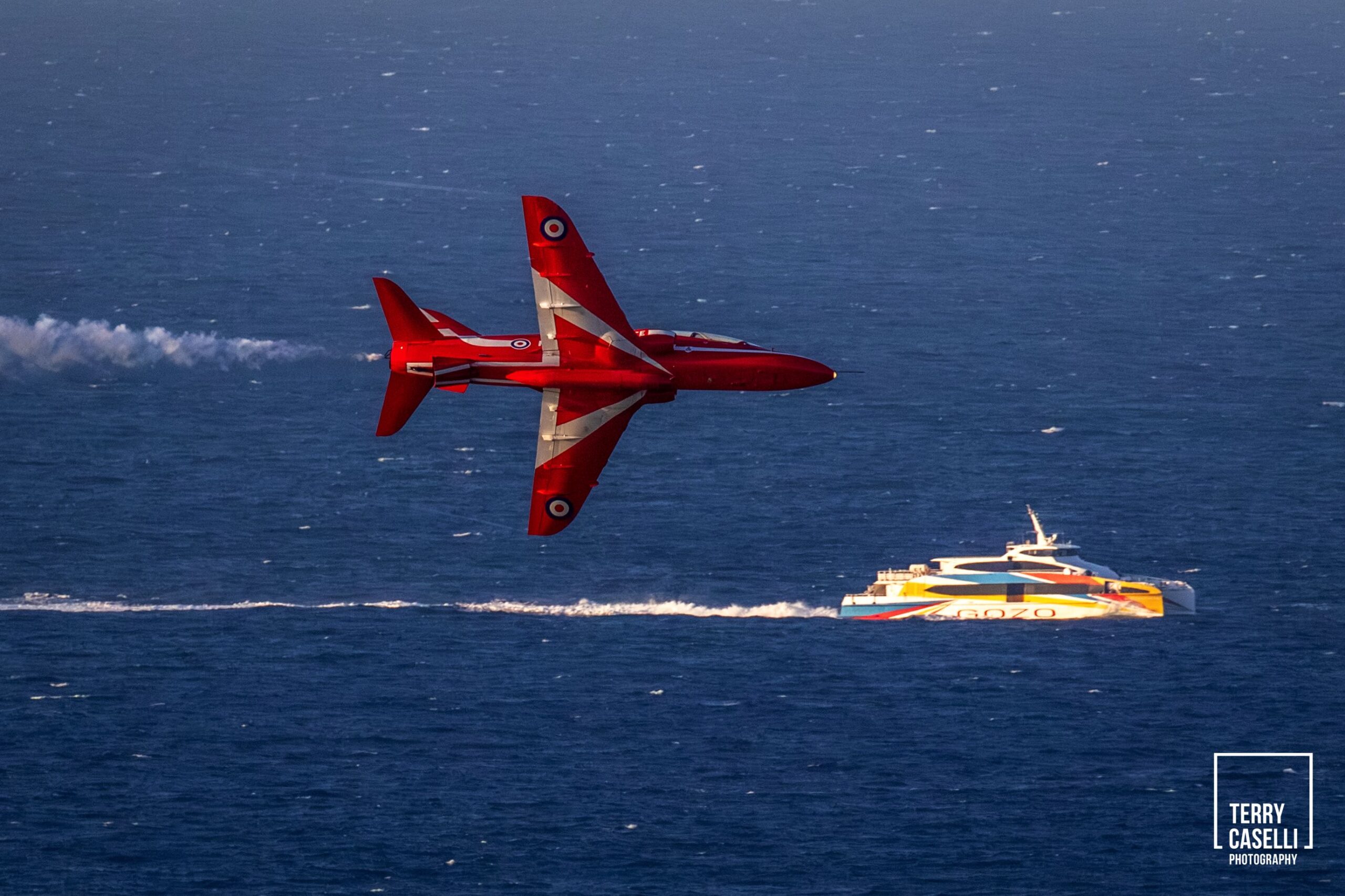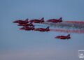 Il momento più atteso è stato senza dubbio il ritorno delle leggendarie RAF Red Arrows, che hanno intrattenuto il pubblico con le loro evoluzioni aeree e le scie colorate che hanno dipinto il cielo sopra le coste. Accanto a loro anche i display team degli Eurofighter tedeschi, con i caccia Typhoon e Tornado, e il rarissimo Harrier AV-8B+ della Marina spagnola, che è tornato a esibirsi sull’isola dopo oltre quindici anni.